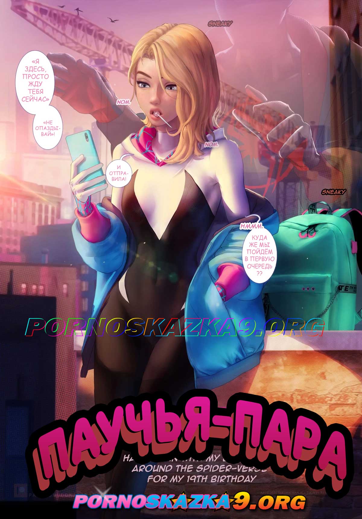 Порно комикс «Паучья пара.» Гвен ждала Майлза, чтобы погулять с ним на свой день рождения. В итоге, встретившись они решили...