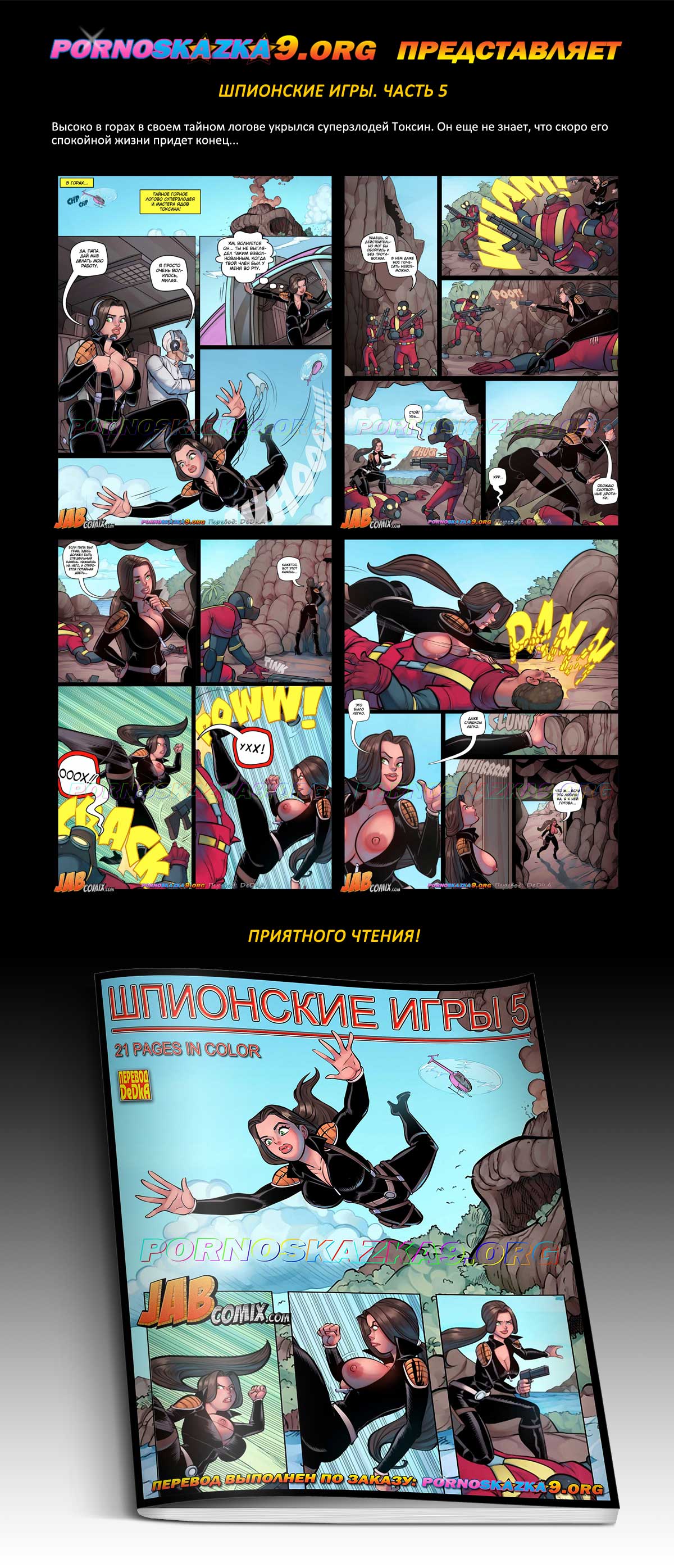 Порно комикс Шпионские игры. Часть 5. Высоко в горах в своем тайном логове укрылся суперзлодей Токсин. Он еще не знает, что скоро его спокойной жизни придет конец…